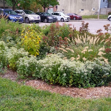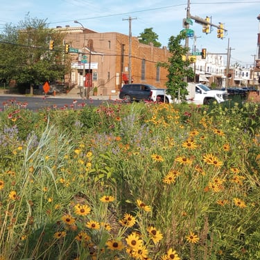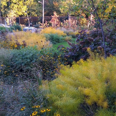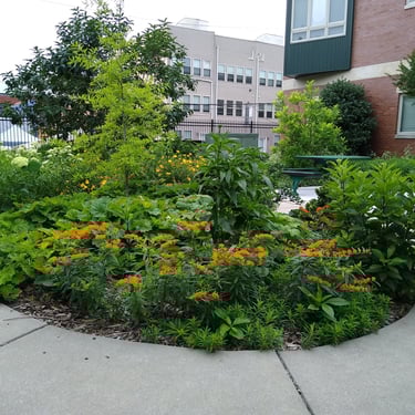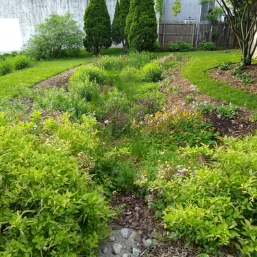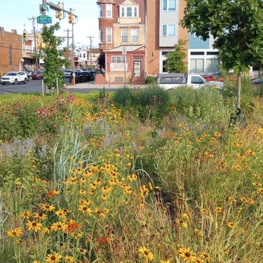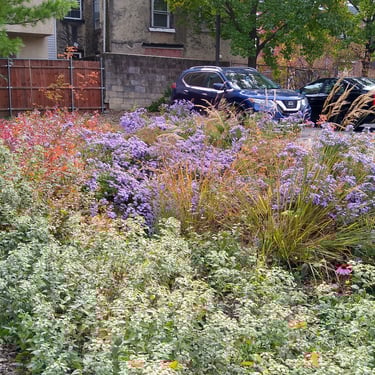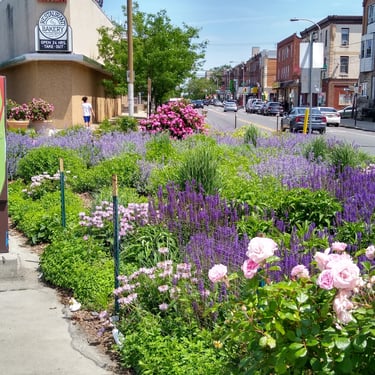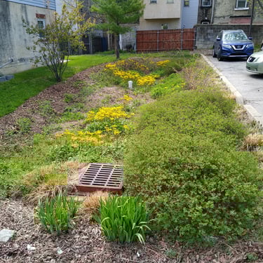 Rain Gardens vary greatly. Some are little more than swales filled with boggy marsh plants. Some are highly engineered and costly, involving engineered soils, complex street-grade water overflow systems, and large construction machinery. CityGreen has done the planting design for four rain gardens in North and South Philly and we have maintained them for close to ten years.
